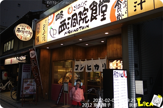 沒有特別想吃什麼,巴士站旁的西洞院食堂招牌很可愛,吸引了大捲。我把晚餐的決定權交給她,她正在研究。