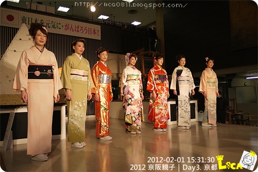 沒想到,到西陣織會館沒多久,正巧遇上服裝表演,開場的時候還是用中文解說呢~此時也有幾個大陸團正在館內。